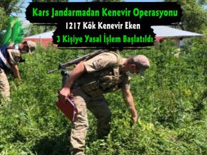 Kars Güncel- Valilikten yapılan açıklamada; "İl Jandarma Komutanlığımız tarafından yapılan titiz planlama, takip ve çalışma sonucunda Akyaka İlçesinde 2 şüpheliye ait evin bahçesinde 423 kök, Selim İlçesinde 1 şüpheliye ait evin bahçesinde ise 794 kök olmak üzere toplam 1.217 kök kenevir bitkisi ele geçirilmiştir.