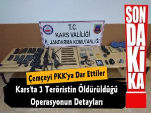 Kars Güncel- Yapılan açıklamada; "PKK/KCK terör örgütünce Kağızman Çemçe bölgesini takviye etmek maksadıyla bölgeye gelen (3) teröristin istihbaratının alınması üzerine 18 Mayıs 2020 günü Kars İl Jandarma Komutanlığımıza bağlı Kağızman Jandarma Komando Tabur Komutanlığınca icra edilen operasyonda (3) terörist silah ve teçhizatlarıyla birlikte ölü olarak ele geçirilmiştir.
