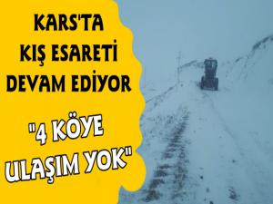 Kars Güncel- Kars'ta etkili olan kar yağışı ve tipi dolayısıyla 4 köy yolu ulaşıma kapandı. Köy yollarının ulaşıma açılması için İl Özel İdaresi karla mücadele ekipleri yolların açılması için çalışma başlattığı öğrenildi.