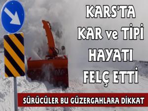 Kar yağışı ve tipinin etkili olduğu Kars Merkez'de 22, Akyaka'da 7, Arpaçay'da 1, Digor 13, Kağızman 4, Sarıkamış 8, Selim'de 24 köy yolunda ulaşım sağlanamıyor.