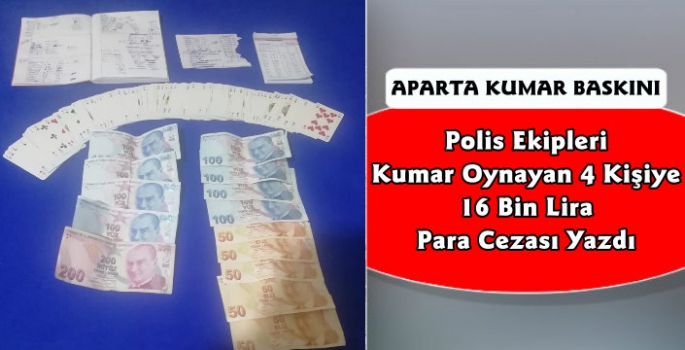 Kars Güncel- Emniyetten yapılan açıklamada;"Asayiş Şubemizce bir apartın kahvehane olarak düzenlendiği ve işyeri sahibi ile birlikte 4 şahsın kumar oynadığı tespiti üzerine Covid-19 tedbiri ve kumar oynamaktan 16.608 TL idari para cezası uygulanmış, kumar oynanması için yer ve imkan sağlama suçundan adli işlem yapılmıştır."denildi.