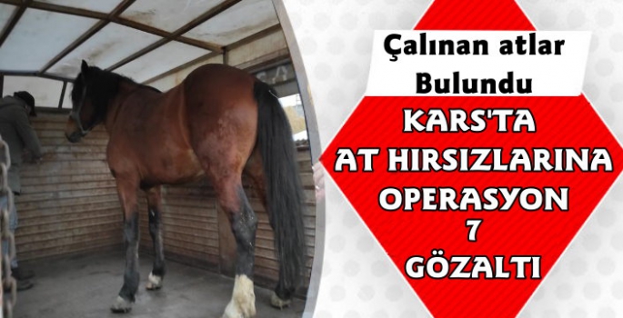 Kars Güncel- Yapılan açıklamada; "İl Jandarma Komutanlığımız sorumluluk bölgesinde 2020 Ekim ayı içerinde meydana gelen faili meçhul at hırsızlığı olayının aydınlatılabilmesi için Kars Jandarması JASAT timlerince 3 ay süren titiz çalışma ve takip sonucunda 13.01.2021 tarihinde Kars ve Ardahan illerinde yapılan operasyondan 7 şüpheli yakalanmış ve hayvanları çaldığı tespit edilen 3 şüpheli hakkında organize olarak hayvan hırsızlığı yapmak suçundan adli makamlar tarafından işlem başlatılmış ve çalınan atlar sahiplerine teslim edilmiştir." denildi.