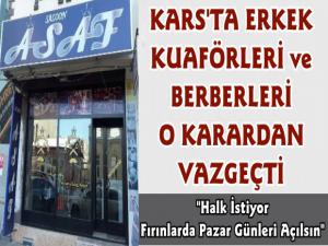 Kars'ta Berberler ve Kuaförler'in bağlı olduğu Terziler Odası Başkanlığı tarafından yıllardır konuşlan ancak 2015 yılı itibari ile hayata geçirilebilen erkek kuaförlerinin pazar günü, tatil olması bazı berberler tarafından istenmemiş ancak alınan karara rağmen işyerlerini pazar günleri açan esnafa para cezası olması nedeni ile dükkanları kapatmak zorunda kalmışlardı. Alınan karar vatandaşlar ve esnafların tepki göstermeleri geçte olsa karşılık bularak alınan karar iptal edilerek isteyen esnafın pazar günleri de işyerlerini açabilecekleri kararlaştırıldı.