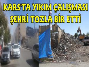 Kars Güncel- Karsta geçtiğimiz aylarda inşaatına başlanan ve Kars Belediyesinden alınarak Sultan Alparslan Külliyesi alanına dâhil edilen 3 binanın yıkımına başlandı. Bu sabah binaların yıkılmasına başlanmasının ardından yıkım çalışmaları sırasında sulama çalışmaması olmaması nedeniyle adeta şehri toz bulutu kapladı.