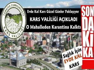Karantina uygulaması sona eren yerleşim yeri 30 Mart 2020 tarihinde karantina altına alınarak mahalleye giriş çıkışlar durdurulmuştu, 14 günlük karantina süresinin sona ermesiyle birlikte karantina kaldırıldı. Böylece Kars genelinde 9 olan karantina ilan edilmiş yerleşim yeri sayısı 6'ya düştü.