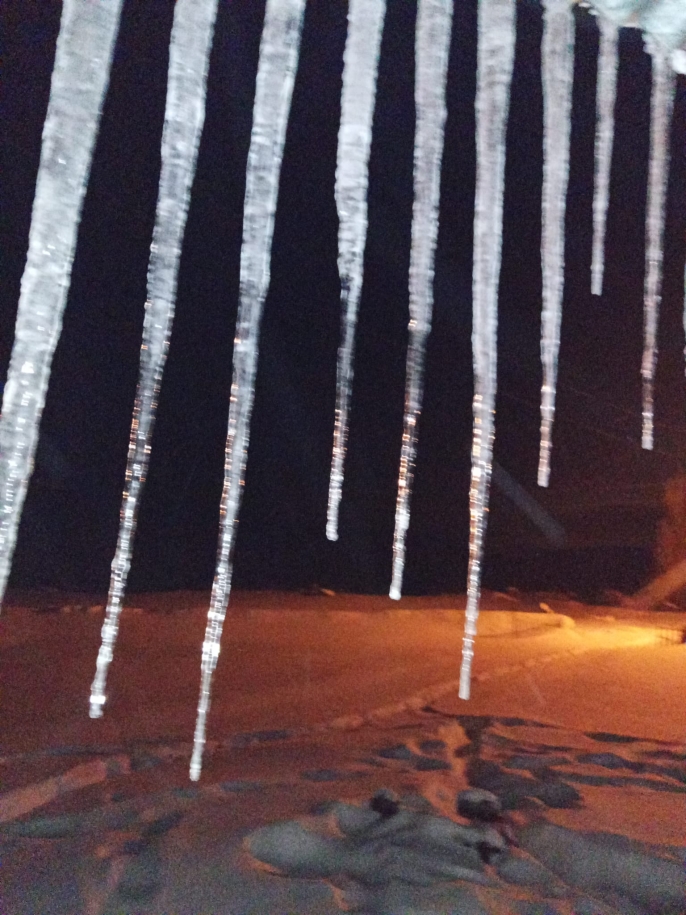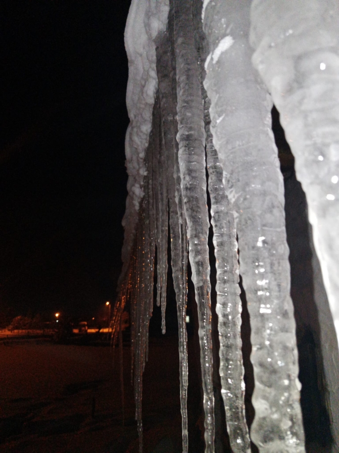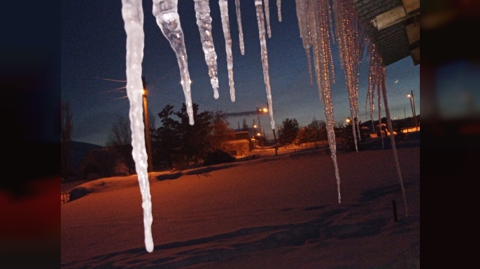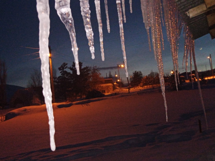 Kars’ta etkili olan yoğun kar yağışının ardından hava sıcaklıklarının düşmesiyle birlikte buz sarkıtları tehlike oluşturmaya başladı. Yer yer 2 metreyi bulan kar kalınlığının ardından, özellikle binaların çatı ve saçaklarında oluşan buz sarkıtları kısa sürede aynı uzunluklara ulaştı.