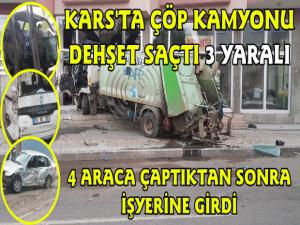 Meydana gelen kazada yaralanan sürücü ve diğer iki temizlik işçisi tedavi edilmek üzere hastaneye kaldırılırken çöp kamyonunun çarptığı dört araçta ve işyerinde büyük maddi hasar meydana geldi.