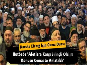 Kars Güncel- Geçtiğimiz hafta Elazığ merkezli meydana gelen 6.8 şiddetindeki depremde 41 kişinin yaşamını yitirdiği, 1607 kişininde yaralandığı deprem sonrasında bugün ki Cuma hutbesinde "Afetlere Karşı Bilinçli Olalım" konusu anlatıldı.