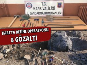 Kars Güncel-Kars Valiliği'nden yapılan yazılı açıklamada: "Valiliğimiz kontrolünde, İl Jandarma Komutanlığımız tarafından 17 Kasım 2019 tarihinde Kağızman İlçesi Çeperli Köyü mevkiinde izinsiz kazı yapan 8 şüpheli şahıs suç aletleri ile birlikte ele geçirilmiştir.