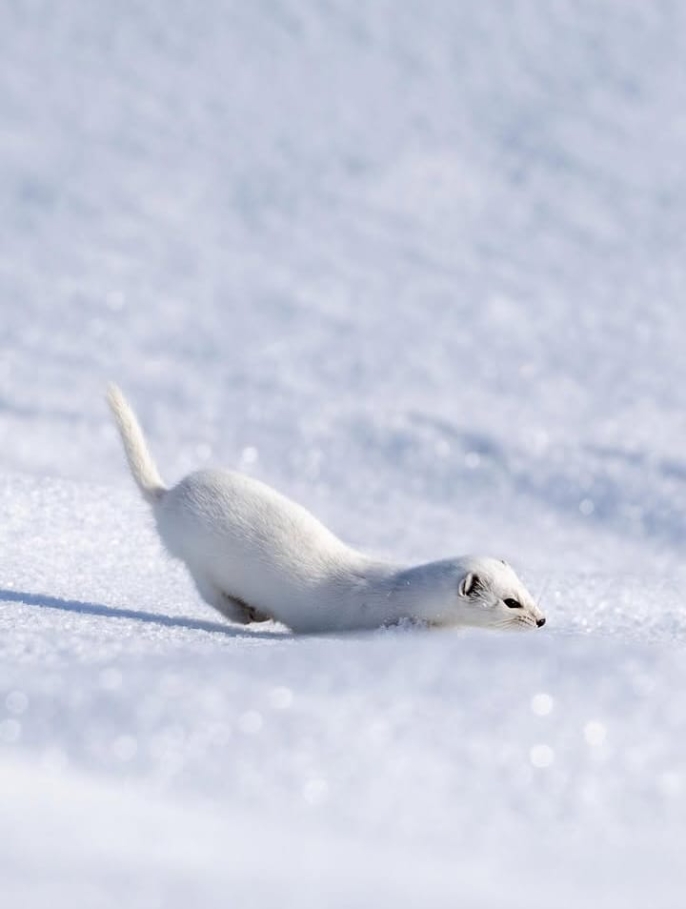 Kars’ın kış sessizliğinde doğanın nadir görülen canlılarından beyaz gelincik (ermine), fotoğraf sanatçısı Ahmet Yılmaz tarafından görüntülendi.