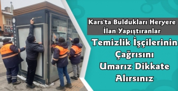 Bir şehrin temiz şehir olması için her alanda temizliğin şart olduğunu vurgulayan Kars Belediyesi Temizlik İşleri görevlileri “Özellikle duraklara yapıştırılan ilan benzeri afişler işlerimizi çok zorlaştırıyor. Zaten duraklara ilan yapıştırmak yasak fakat bu yasağa rağmen duraklara afişler yapıştırılıyor. Yapıştırılan afişler hem çirkin görüntülere neden olurken hem de temizliği zorlaştırıyor."denildi.