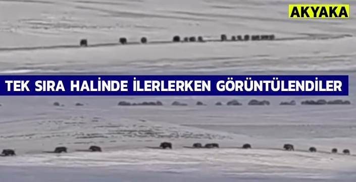 Kars’ın Akyaka ilçesinde görülen domuz sürüsü cep telefonuyla kayda alındı. Uzak mesafeden çekilmesine rağmen görüntülerde sürünün kalabalık olduğu net bir şekilde görüldü.