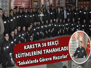 Belirlenen Polis Akademilerinde zorunlu eğitimlerini gören ve Kars sokaklarında görev yapacak yeterliliğe ulaşan bekçiler daha sonra Kars İl Emniyet Müdürlüğü'nde bir haftalık oryantasyon eğitimine tabi tutuldu. Bugün düzenlenen törende Kars sokaklarında görev yapacak olan 58 bekçi oryantasyon eğitiminin tamamlanmasının ardından göreve hazır hale geldi.