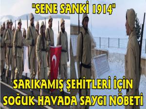 Burada temsili askerleri canlandıran öğrenciler sıfırın altında 15 derecede nöbet değişimi yaptı. Meşale yakan öğrenciler nöbet tutan askerlere çorba dağıttı.
