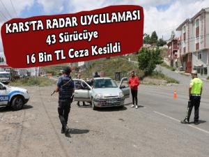 Kars İl Emniyet Müdürlüğü'nden Yapılan Yazılı Açıklamada: "13-14 Temmuz 2019 günü trafik düzeni ve güvenliğinin sağlanmasına yönelik olarak sürücülerin trafik kural, yasaklama ve kısıtlamalarına uygun şekilde araç kullanmaya yöneltmek, trafik ışık ve işaret ihlali kaynaklı kazaları önlemek ve kaza sonucunda meydana gelen can ve mal kayıplarını en aza indirmek amacıyla; Radarla Hız Denetimi uygulaması ülke genelinde ve ilimizde muhtelif noktalarda yapılan denetimlerde;