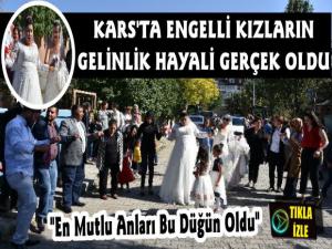 Kars Güncel-Kars'ta doğuştan zihinsel engelli olan Musa ve Selma Demir çiftinin kızları 22 yaşındaki İlksen Yağmur Demir ile Turan ve Makbule Taş çiftinin kızları 33 yaşındaki Şehnaz Dilan Taş için evlerinin önünde temsili düğün töreni düzenlendi.