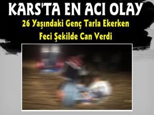 Edinilen bilgiye göre Karsın Sarıkamış İlçesi İnkaya Köyü'nde yaşayan Osman E. isimli vatandaş, yaz mevsimiyle birlikte tarlasını ekmek için kendisine ait tarlaya gitti. Tarlada traktörün arkasına bağlı olan tohum serpme makinesine kafasını sıkıştırarak ağır yaralandı. Tarlada ağır yaralanan 36 yaşındaki Osman E. kaldırıldığı Sarıkamış İlçe Devlet Hastanesi'ne kaldırıldı. Burada yapılan tüm müdahalelere rağmen hayatta kalamayan Osman E.'nin kesin ölüm sebebinin belirlenmesi için hastane morguna kaldırıldı.