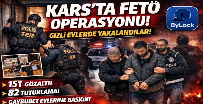 Emniyet Genel Müdürlüğü koordinesinde FETÖ’ye yönelik Kars'ın da aralarında olduğu 46 ilde eş zamanlı operasyon düzenlendi. Operasyonlarda, haklarında kesinleşmiş hapis cezası veya aranma kaydı bulunan 151 şüpheli yakalandı.