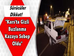 Kars'ta gizli buzlanma nedeniyle sürücüsünün kontrolünden çıkan otomobil kaza yaparak durabildi.