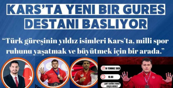 Kars, Türk güreşine gönül verenler için tarihi bir etkinliğe ev sahipliği yapmaya hazırlanıyor. Türkiye Güreş Federasyonu ve Kars Valiliği iş birliğiyle organize edilen etkinlik, 16 Temmuz Çarşamba günü saat 18.00’de Kars Şehit Şentürk Aydınner Gençlik Merkezi’nde gerçekleştirilecek.