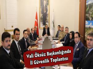 Vali Türker Öksüzün; vatandaşlarımızın huzur ve güven ortamında hayatlarını sürdürmelerini sağlamak adına il genelinde alınan güvenlik tedbirlerine ilişkin genel değerlendirmelerde bulunduğu toplantıda, İlimiz genelinde güvenlik ve asayiş konularında yapılması gereken çalışmalar, alınması gereken tedbirler ile kurumlar arası koordinasyon gerektiren hususlar görüşüldü.
