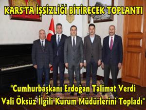 Cumhurbaşkanı Recep Tayyip Erdoğanın himayelerinde, Aile, Çalışma Ve Sosyal Hizmetler Bakanı Zehra Zümrüt Selçukun talimatlarıyla, Vali Sayın Türker Öksüzün başkanlığında yapılan toplantıya; Kars Ticaret ve Sanayi Odası Başkanı Ertuğrul Alibeyoğlu, Çalışma ve İş Kurumu İl Müdürü Yusuf Bulut, Sosyal Güvenlik Kurumu İl Müdürü Abdulkadir Ayluçtarhan, Aile, Çalışma ve Sosyal Hizmetler İl Müdürü Aydın Acay katıldı.