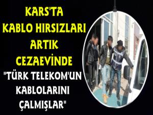 Kars Güncel-Hırsızlık olaylarını R.T.B ve M.A.A isimli şahısların gerçekleştirmiş olduğu tespit edildi. Yapılan ikamet ve müştamilat aramalarında Türk Telekoma ait eritilmiş kablo parçaları, kablo çeperleri, çelik halat parçaları bulundu. Adli mercilere sevk edilen 2 şahıs 26 Şubat 2019 günü tutuklanarak cezaevine teslim edildi.