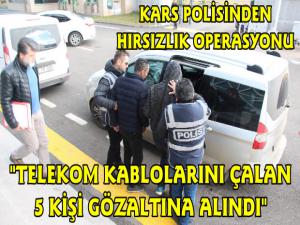 Kars Güncel- Kars'ta polis ekipleri tarafından düzenlenen operasyonda Türk Telekoma ait telefon ve internet kablolarını çaldıkları gerekçesi ile beş kişi gözaltına alındı.