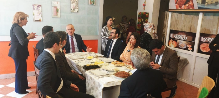 Ziyaretin bir diğer dikkat çeken bölümü ise dernek binasında kurulu atölyede üretimi yapılan yöresel lezzetlerin sunumuydu. Kars ketesi, Kars helvası, hangel, Kars lavaşı, zeytinyağlı yaprak sarma ve el yapımı erişte gibi tatlar, kadınların el emeğiyle sofraya taşındı. Misafirler, ikramların hem lezzetinden hem de sunumundaki özen ve estetikten büyük memnuniyet duyduklarını ifade etti.