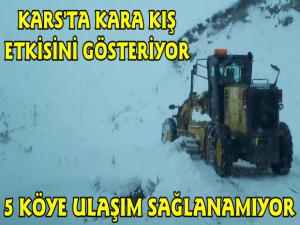 Kars'ta yüksek rakımlı alanlarda kar yağışı etkisini sürdürüyor. Kar dolayısıyla Sarıkamış İlçesinde 5 köye ulaşım sağlanamıyor.