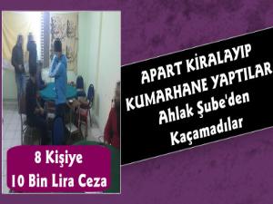 Kars Güncel- Kars İl Emniyet Müdürlüğü'nden yapılan açıklamada; "Asayiş Şube Müdürlüğü Ahlak Büro Amirliği görevlilerince yapılan çalışmalarda 04.04.2020 günü Merkez Mahallesinde bulunan bir apartın, Ş.Y. isimli şahıs tarafından kumar oynatmak amacıyla kiralandığının tespit edilmesi üzerine, ikamette yapılan denetimde S.T, R.M, S.M, K.Y, A.A, R.Ö, M.M, F,Y isimli şahısların kumar oynadıkları tespit edilmiş, adı geçen şahıslara "Kumar Oynanması için Yer ve İmkân Sağlama" suçundan adli tahkikat yapılmıştır.