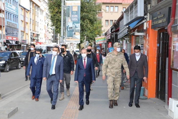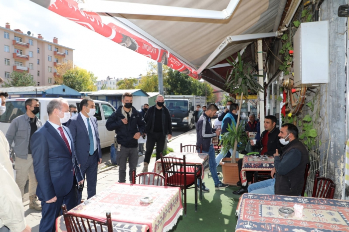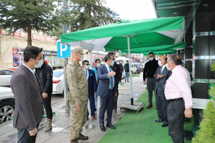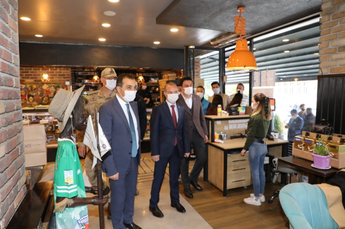 Vali/ Belediye Başkan v. Türker Öksüz ve beraberindekiler İşletmeleri ziyaret ederek maske, sosyal mesafe ve temizlik kurallarına uyulup uyulmadığını kontrol ederek esnaf ve vatandaşlara uyarılarda bulundu.