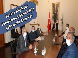 Kars Valisi Türker Öksüz, köylerde vatandaşların yaşadığı sorunların çözüme kavuşması için köy muhtarlarıyla bir araya gelmeye devam ediyor.
