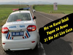 854 aracın kontrol edildiği uygulama sonucunda; 19u hız kurallarına uymamak, 17si diğer trafik kural ihlalleri olmak üzere toplam 36 araca 21.547 TL trafik idari para cezası kesilmiş, 6 araç ise trafikten men edilmiştir." denildi.