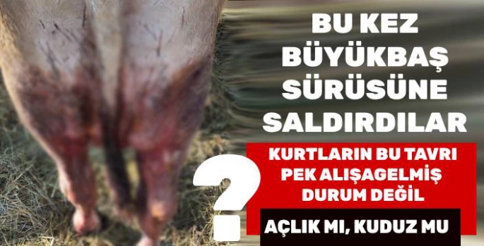Kars'ın merkez ilçesine bağlı Dikme Köyü'nde akşam saatlerinde yaşanan olayda, merada otlayan büyükbaş hayvan sürüsüne üç kurt saldırdı. Genellikle küçükbaş hayvanları hedef alan kurtların bu defa büyükbaş hayvanlara yönelmesi dikkat çekerken, saldırının açlık nedeniyle mi yoksa kuduz gibi bir hastalık kaynaklı mı gerçekleştiği soruları gündeme geldi.