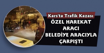 Kars Güncel- Kars'ta akşam saatlerinde Cumhuriyet Caddesi Fethiye Camii kavşağında Özel Harekat Şube Müdürlüğüne ait bir zırhlı araç ile Kars Belediyesine ait kanalizasyon açma aracı çarpıştı.