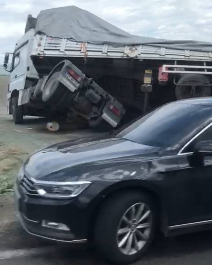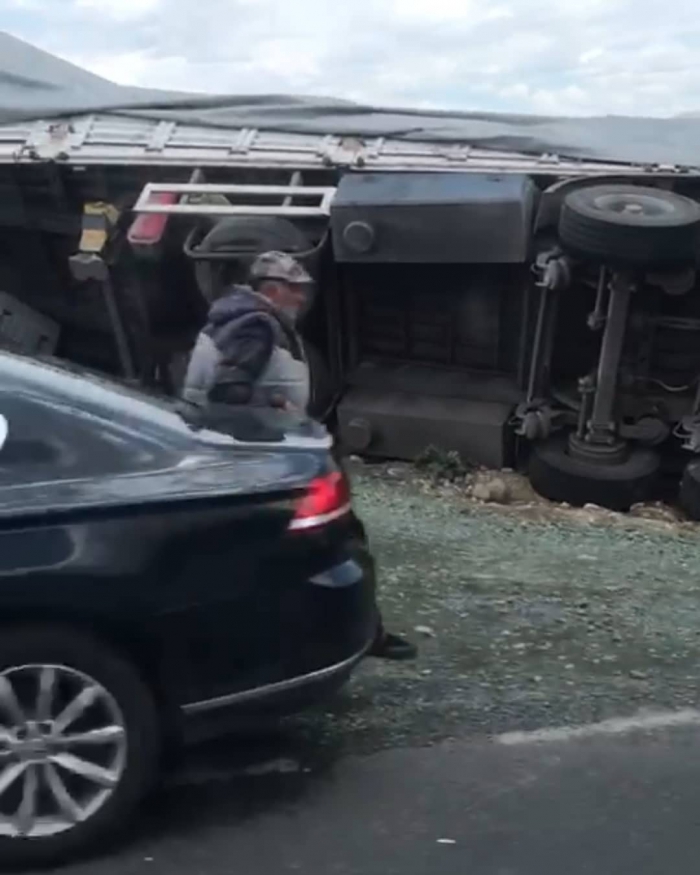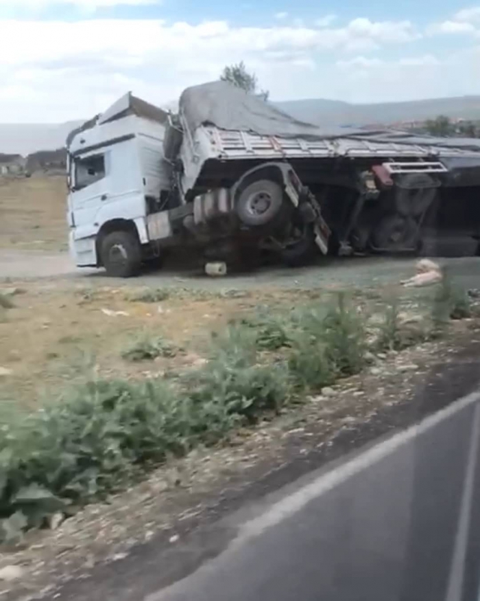 Kars Güncel-Edinilen bilgiye göre Kars Merkezden Çakmak Köyü istikametine gitmekte olan saman yüklü tır sürücüsünün direksiyon hakimiyetini kaybetmesi sonucu şarampole devrildi. Kazada can kaybı yaşanmazken araçta maddi hasar meydana geldi.