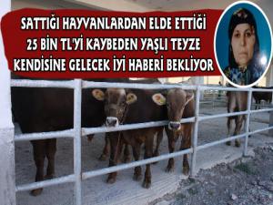 Sattığı hayvanlardan elde ettiği 25 Bin TL'yi kaybeden Salihe Bayrambey, kendisine gelecek iyi haberi beklerken, bu parayı bulan vatandaşlara ise 5 Bin TL'sini hediye edeceğini belirtti.