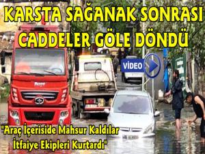 Yağmur suları içerisinde kalan 06 AL 5173 plakalı araç stop edip çalışmazken, araç sürücüsü ve araçtaki yolcular yağmur nedeniyle oluşan su birikintisinden dolayı araçtan çıkamadı. Durum itfaiye ve polis ekiplerine bildirildi. Kars'ta Evliya Camii yanında bulunan caddeye gelen itfaiye ekipleri araçta mahsur kalan vatandaşları tahliye etti. Daha sonra polis ekipleri yağmur suları altında kalan aracın cadde ortasından kaldırılması için çekiciden yardım istediler.