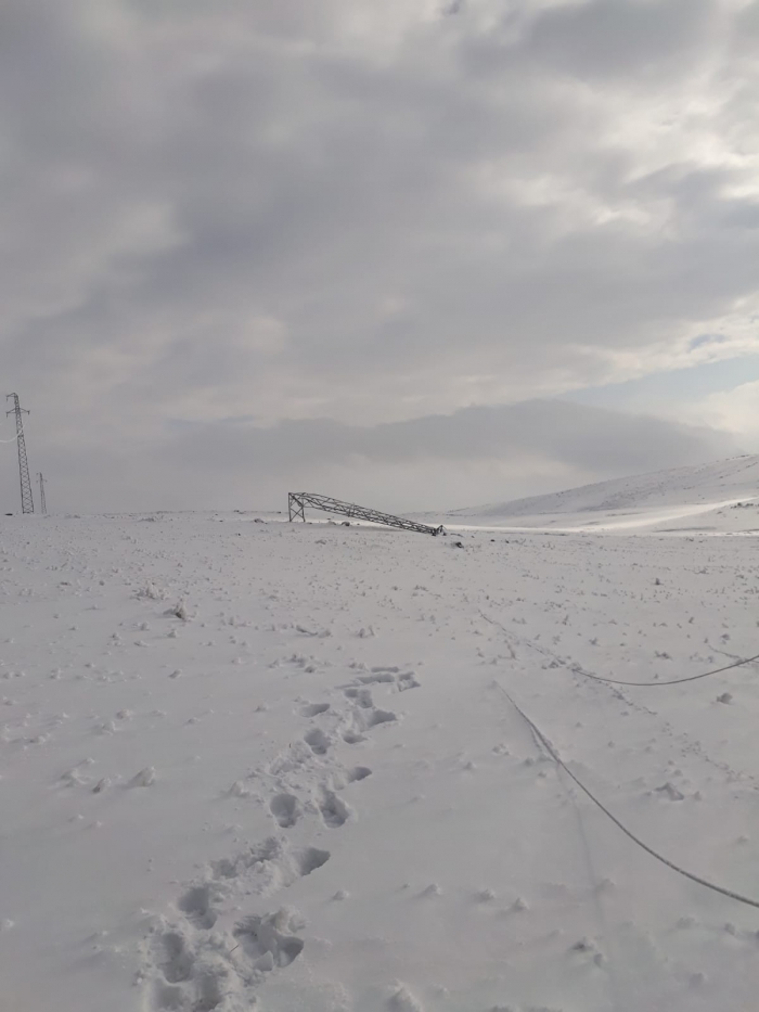 Oluşan buz kütlelerinin ağırlıkları nedeniyle enerji nakil iletkenleri ve demir direkler ağırlığa dayanamayarak devrildi ve iletkenler koptu. Olay nedeniyle yakında bulunan bazı yerleşim yerinde elektrik kesintisi meydana geldi. Durumun Aras Edaş ekiplerine bildirilmesi üzerine olay yerine giden Aras Edaş görevlileri yıkılan demir direkler yerine yeni direkler dikerek, enerji nakil hatlarını onarıp yerleşim yerlerine elektrik enerjisi verdiler.