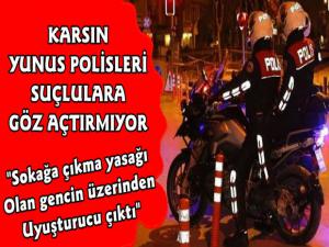 Kars Güncel- Kars İl Emniyet Müdürlüğü'nden yapılan açıklamada; "Asayiş Şube Müdürlüğü Motosikletli Polis Timleri Amirliğince 12.04.2020 günü İlimiz Cumhuriyet Caddesi üzerinde yapılan denetimde, M.Y. isimli şahsın 20 yaş altı olduğu tespit edilerek idari para cezası uygulanmış, ayrıca şahsın yapılan üst aramasında 6 kullanımlık metamfetamin uyuşturucu madde ele geçirilmiştir." denildi.