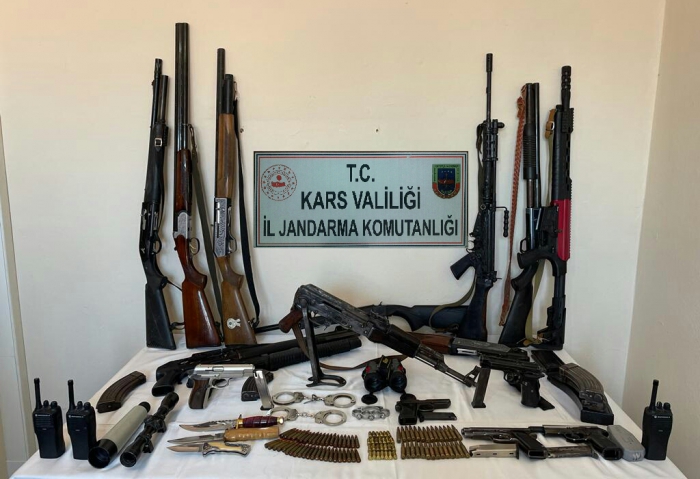 Kars Güncel- Valilikten yapılan açıklamada;"Kars İl Jandarma Komutanlığınca; 07.12.2021 günü Arpaçay ilçesi mülki sınırları içerisinde, önceden tespit edilen adreslere yapılan aramada; (1) Adet Kaleşnikof Piyade Tüfeği, (4) Adet G-1 Piyade Tüfeği, (1) Adet Şarjörü; (3) Adet Ruhsatsız Tabanca, (12) Adet Tabanca Şarjörü, (9) Adet Ruhsatsız Av Tüfeği, (3) Adet Faturasız Kuru Sıkı Tabanca, (3) Adet Dürbün, (2) Adet Kelepçe, (5) Adet El Telsizi ve silahlara ait toplam (575) adet mühimmat ele geçirilmiştir. Bulunan silahlara el konulmuş, kriminal inceleme yapılmak üzere Jandarma Kriminal Merkezi’ne gönderilmiştir. Olay ile ilgili (17) şahıs hakkında adli işlem başlatılmıştır."denildi.