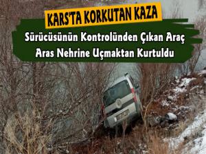 Kontrolden çıkan araç şarampole uçarak metrelerce sürüklendi. Kazada ölü ve yaralıların olmaması sevindirirken kontrolden çıkan araç Aras Nehri'ne uçmaktan çalı ve ağaçların sayesinde kurtulduğu görüldü.