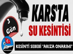 Kars Belediyesi'nden yapılan yazılı açıklamada; "Önemli Duyuru ! Kars Belediyesinden yapılan açıklamaya göre şehir merkezine 2-3 gün su kısıtlı su verilemeyecektir.