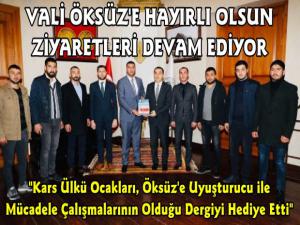 Kars Ülkü Ocakları İl Başkanı Oğuz Güngör yaptığı açıklamada; "Şehrimiz Karsa Yeni Atanan Sayın Valimiz Türker ÖKSÜZe Hayırlı Olsun Dileklerimizi İletmek Üzere Kendilerine, Ülkü Ocakları Kars İl Yönetimi Olarak Ziyaret Ettik. Şehrimize Hayırlı Görevler Yapacağın İnanıyoruz.
