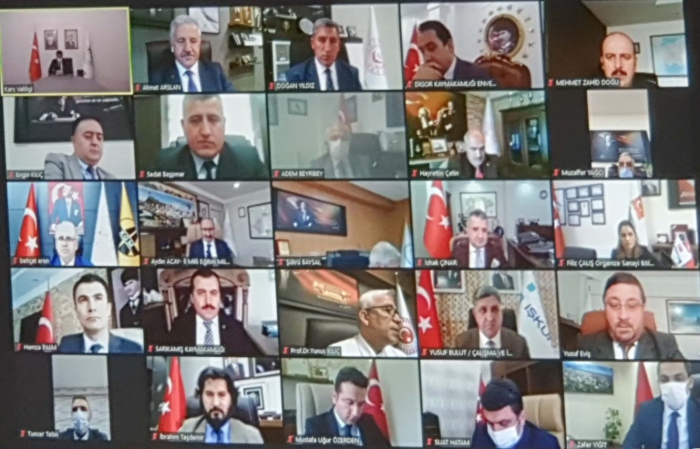 Kars Güncel- Kars Vali Belediye Başkanı Türker Öksüz'ün başkanlığında gerçekleştirilen toplantıya 65. dönem UDH Bakanı Ahmet Arslan, TBMM Tarım,Orman ve KöyişleriKom.Bşk. Prof.Dr. Yunus Kılıç, kaymakamlar ve kamu kurumu yöneticilerinin katılımıyla video-konferans toplantısı gerçekleştirildi.