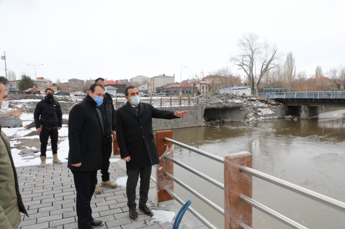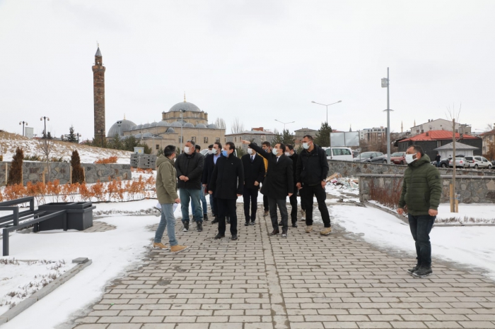 Kars Güncel- Kars Valiliği'nden yapılan açıklamada; "Vali/Belediye Başkan Vekili Sayın Türker Öksüz, Vilayetler Birliği Genel Sekreteri İsmail Sündük ve Personel Genel Müdürlüğü Daire Başkanı Mehmet Soğukpınar ile birlikte Kars Vadisi, Bedesten ve Beylerbeyi Sarayı restorasyon projelerinde incelemelerde bulundular." denildi.