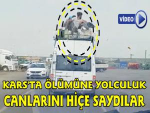 Karsın Selim İlçesinde karayolunda seyir halinde olan yolcu minibüsünü gören vatandaşlar şaşkınlıklarını gizleyemedi. Başka araçta karayolunda seyir halinde olan vatandaşlar tarafından cep telefonu kamerası ile kayıt altına alınan görüntülerde yolcu minibüsü üzerinde bulunan eşyaların yanında yolculuk yapan 3 kişi düşme tehlikeleri olmasına rağmen canları pahasına seyahat etti.