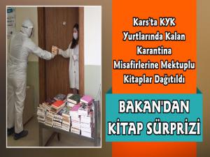 Yurtta kalan vatandaşların oda kapılarını çalan Gençlik Merkezi görevlileri;" Sayın Bakanımız Mehmet Muharrem Kasapoğlu'nun siz misafirlerimize hediyesidir, içerisinde de size hitaben bir mektup bulunmaktadır, iyi okumalar" diyerek teslim ettiği kitapları alan karantina misafirleri ise anlamlı hediye karşısında teşekkür ettiler.