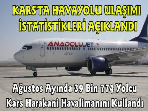 Kars Güncel- DHMİ Kars Harakani Havalimanı 2019 Ağustos ayında Kars Harakani Havalimanında iç hat yolcu trafiği 39.774 oldu.